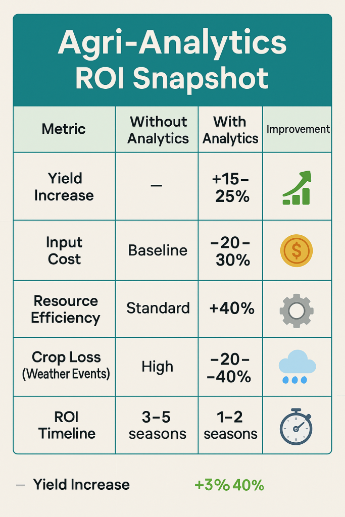 - ROI e analytics in operazioni agricole: benchmark e range tipici.